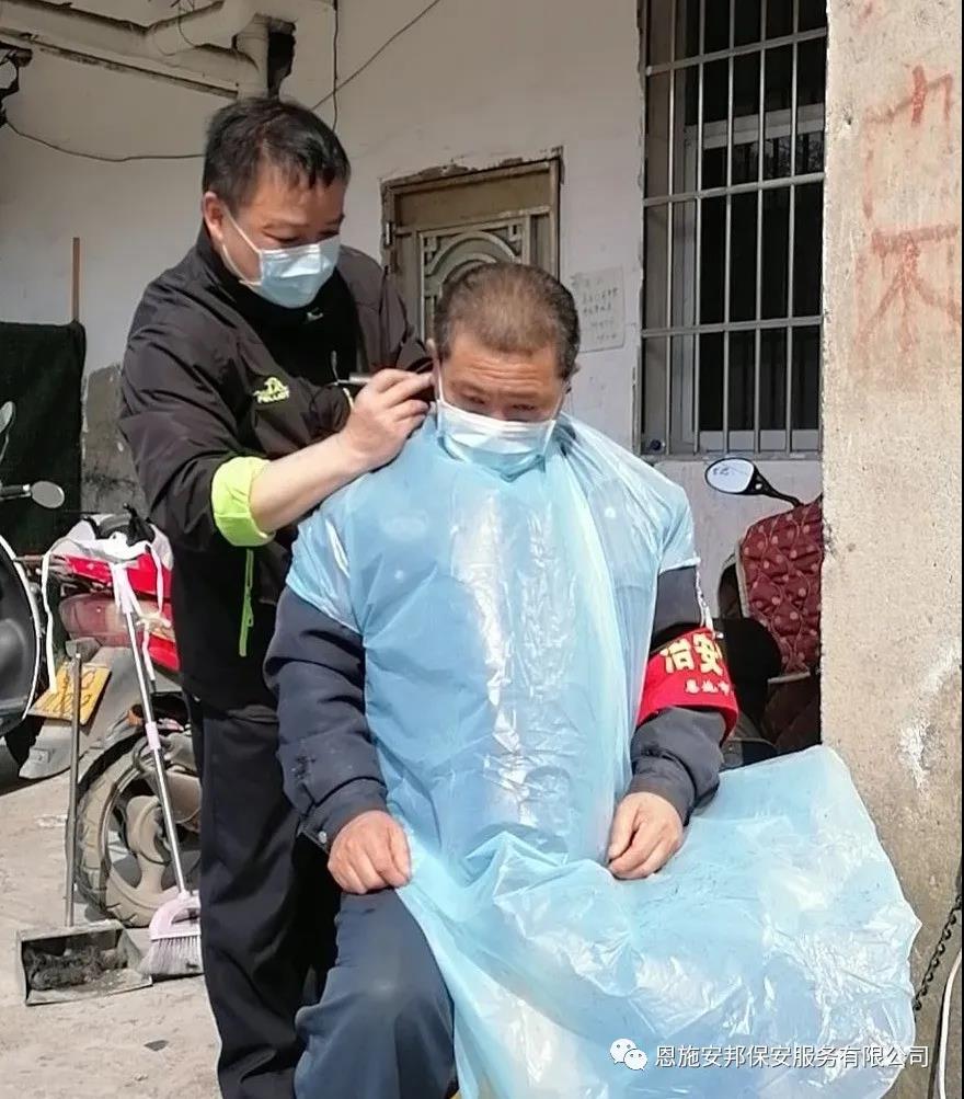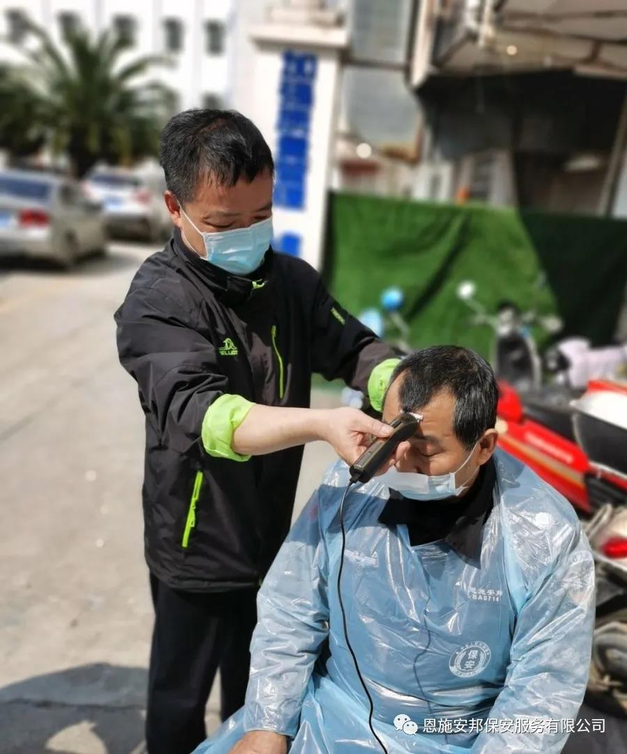 新冠肺炎疫情以来,公司安保人员日夜坚守在疫情防控一线,平时看似简单的理发修面,在这个时候却成了一件人人犯愁的“头等难事”。安邦保安秉承在困难时期重视员工需求的理念,细致周到确保员工生活所需,3月14日,公司护卫部大队长化身为理发师上门为防控一线队员解决了“头等大事”。