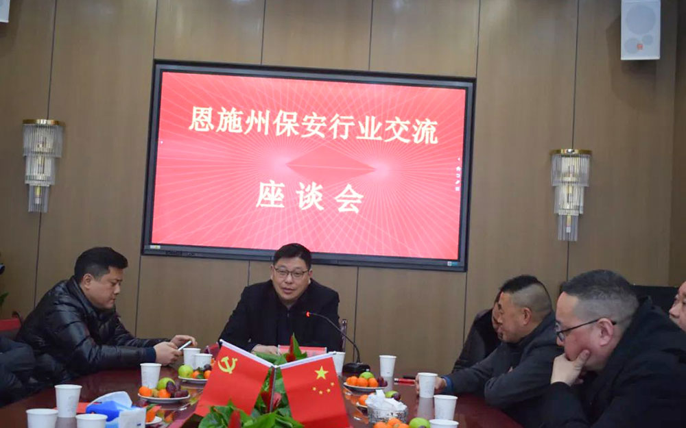 随后,恩施州保安行业代表召开了2022年第一次行业交流座谈会,座谈会由恩施州公安局内保支队政委覃章雄同志主持,各保安公司代表纷纷发言,就企业科学管理、高质量发展、美好前景规划进行了经验介绍,并围绕协会组织筹建、行业标准出台、市场秩序规范等方面进行了交流发言。