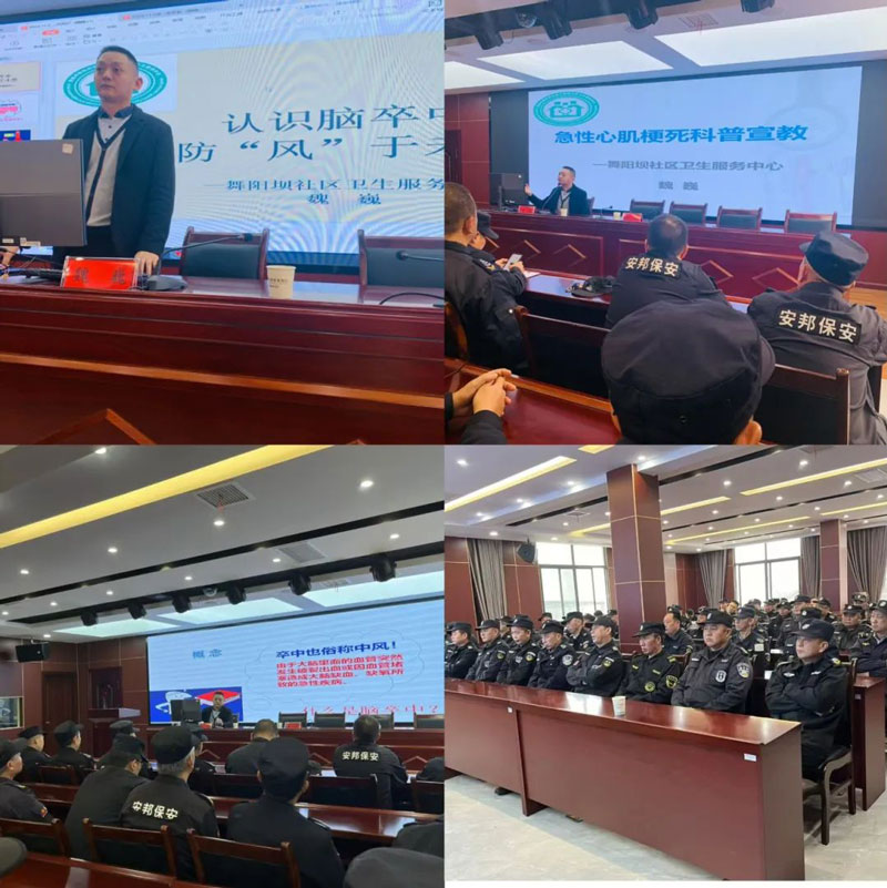 为普及保安员应急知识技能,全面提高保安员自救互救能力,2024年11月2日,我公司特邀舞阳坝社区卫生服务中心副主任魏巍、公共卫生科科长张艳,组织开展了“急性心肌梗死科普宣教”、“认识脑卒中防‘风’于未然”等理论知识讲座。本次讲座共120余名员工参加。