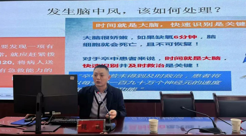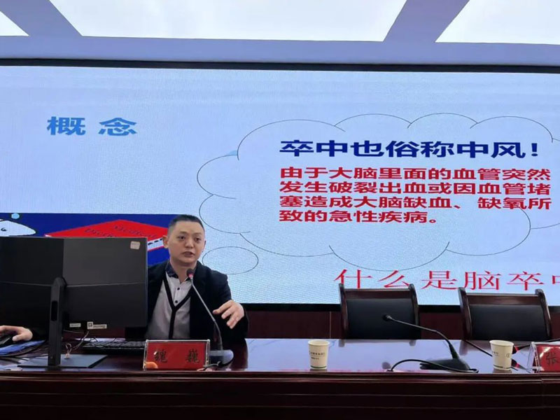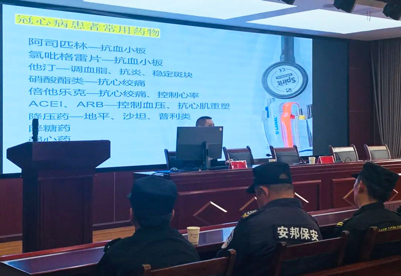 讲座中,魏主任以PPT的形式,用通俗易懂的方式给各位员工介绍脑卒中、急性心肌梗死等相关知识,从心脑血管疾病、糖尿病、高血压等一些常见多发病的病因、预防和治疗进行深入浅出的宣讲,向保安员普及常规保健知识,提倡人们一定要养成健康合理的生活方式,做到合理膳食、适量运动、戒烟限酒。教会大家如何快速识别中风、急性心肌梗死及发生后应该如何处理,让大家获取知识,提高健康意识并身体力行的参与到心脑疾病防治工作中来。
