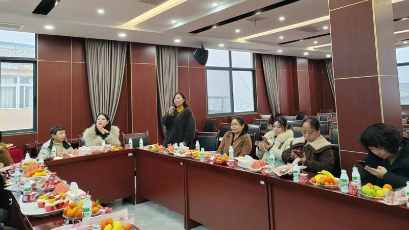 茶话会现场暖意融融,精致茶点与礼品整齐陈列。公司总经理夏秋江发言,向全体女职工致以节日祝福,肯定大家在岗位上的坚守与担当,寄语各位女神既能乘风破浪,也能好好守护自己的幸福,发言赢得阵阵掌声。